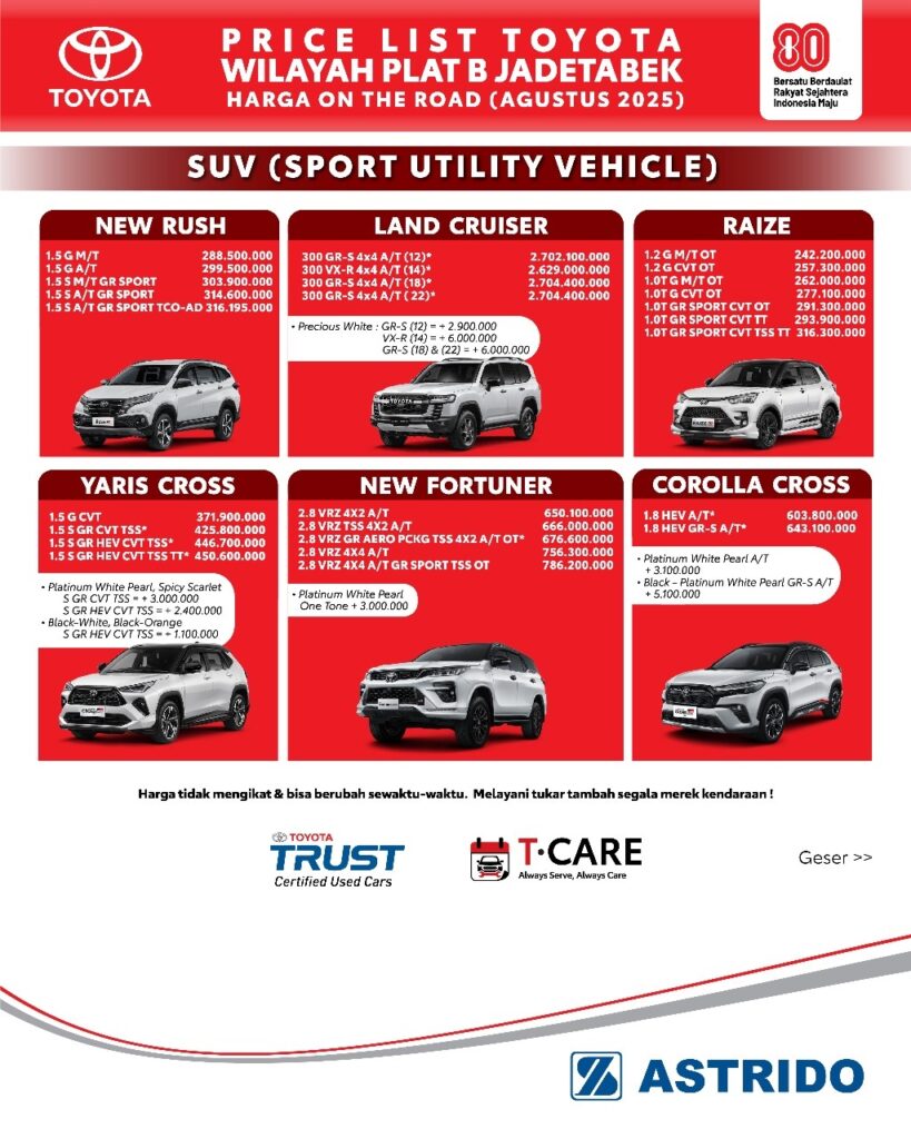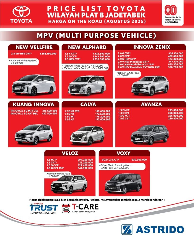 Temukan berbagai mobil pilihan Toyota yang dirancang khusus dengan presisi melalui teknologi modern dan desain stylish sesuai gaya Anda.